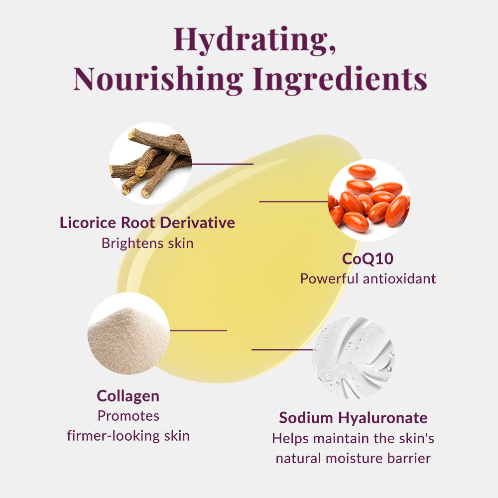 This refreshing, fast-absorbing liquid lotion is gentle enough for all skin types, but particularly beneficial for those with mature skin. Infused with collagen, this formula promotes a firmer, youthful-looking complexion. It helps prepare skin to receive the maximum benefits from moisturizer, while fortifying skin with coenzyme Q10, plus organic olive oil for hydration and sodium hyaluronate which helps maintain the skin's moisture barrier.