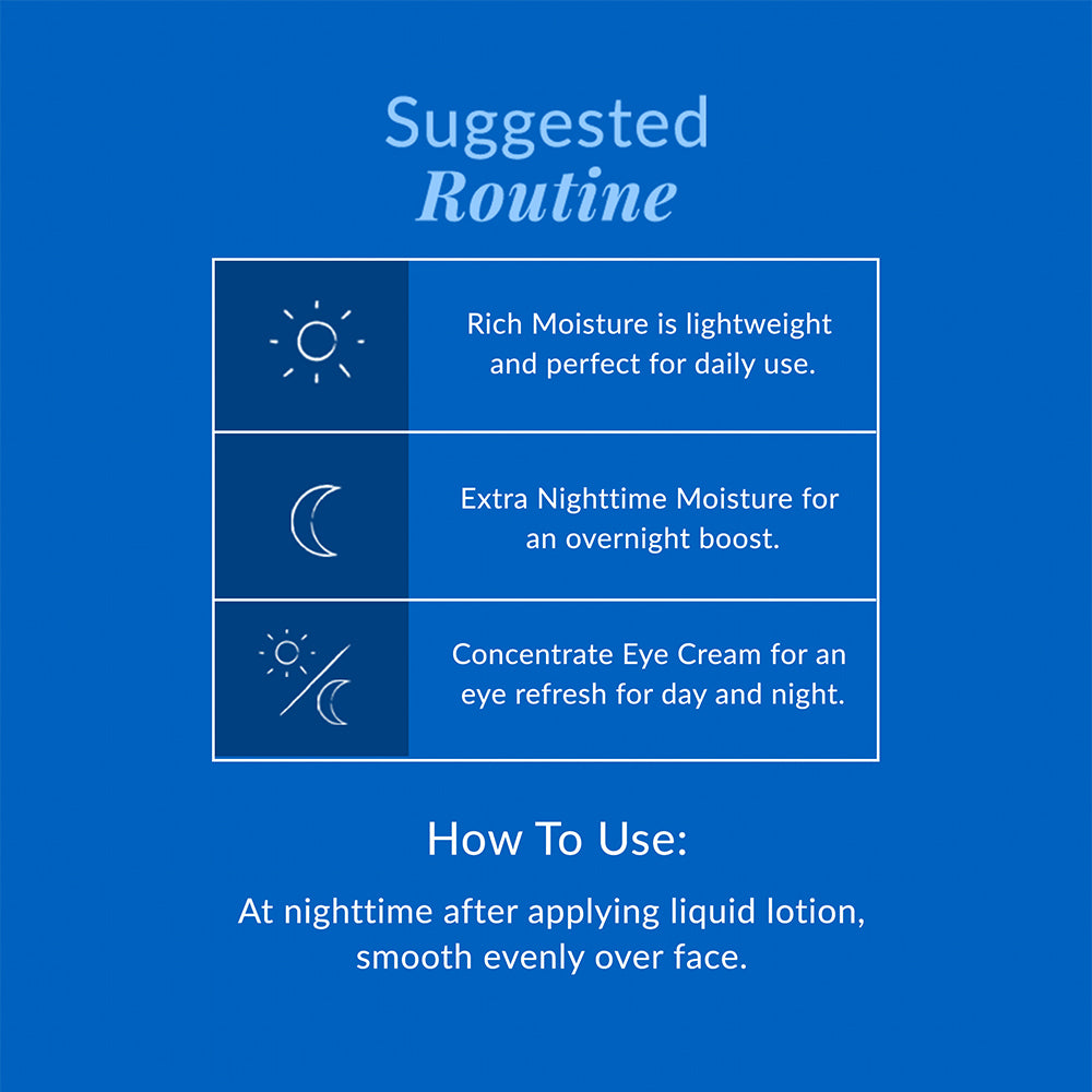 Revitalize your skin during the night with this nourishing facial moisturizer and wake up to rejuvenated, smooth and supple-looking skin. This rich, potent formula absorbs instantly to offer deep moisture relief for all skin types, including dry.