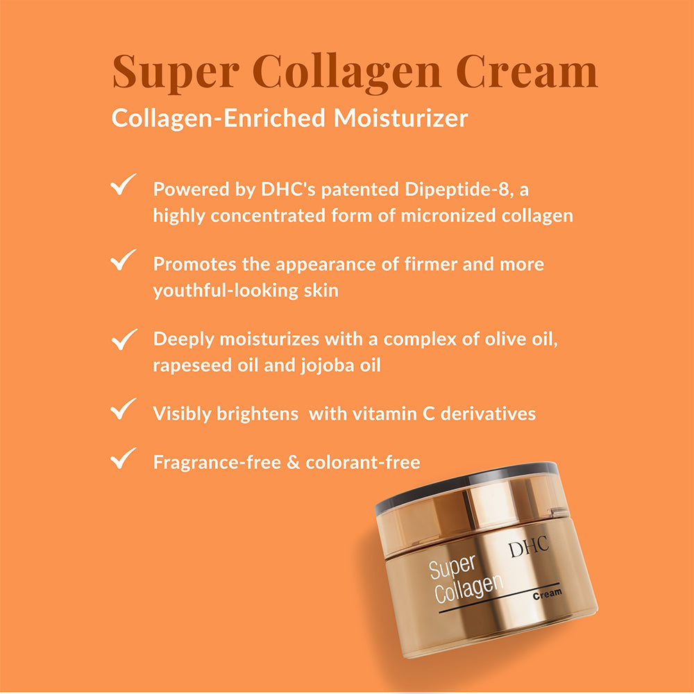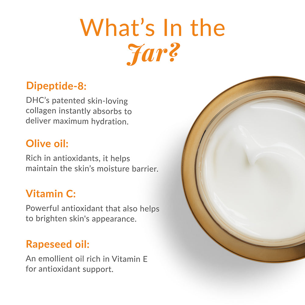 This rejuvenating and nourishing facial moisturizer is powered by DHC's patented Dipeptide-8, delivering our highest concentration of micronized collagen to the skin's top layer.