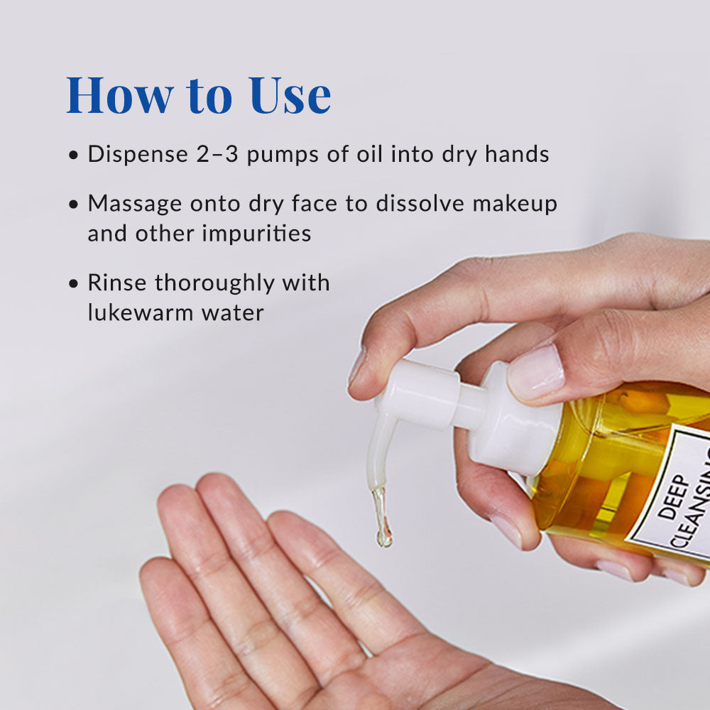 • Deep Cleansing Oil is the first step in your daily double cleanse routine. Double cleansing is a centuries-old Japanese ritual for achieving a clean, fresh, and incredibly soft complexion. The oil-based cleanser breaks down dirt, sebum and other impurities and also removes all traces of makeup, so skin is left looking clean and refreshed.