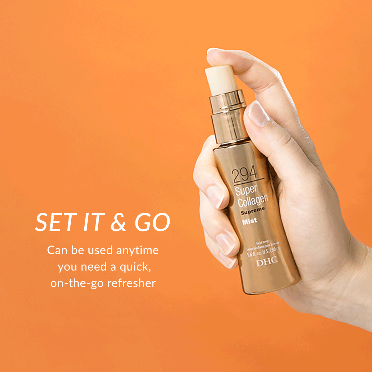 Just a quick spray and your skin will be replenished with a high concentration of skin-beautifying ingredients such as Dipeptide-8 collagen, which promotions hydration and firmer-looking skin.
